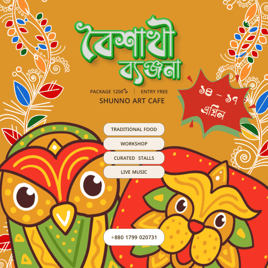 “Boishakhi Byanjana” unfolded as a four-day celebration blending food, workshops, music, and curated stalls within the Shunno Art Cafe environment. Designed as a slow and immersive New Year gathering, the programme combined hands-on creative sessions, traditional cuisine, live performances, and small-scale artisan showcases.