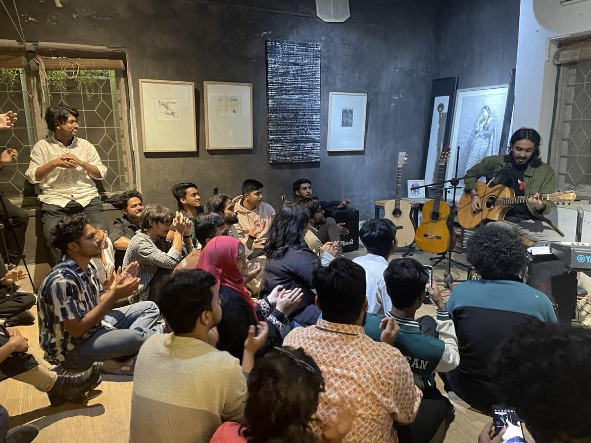 “Therefore, November” was a four-hour live music gathering co-hosted by The Panda Factory and Shunno Art Space, transforming the café into an intimate performance venue. The evening featured performances by Shafi Hasan, Azwaad, Yer Blues, and Teerno, creating a relaxed yet immersive atmosphere within the art space.